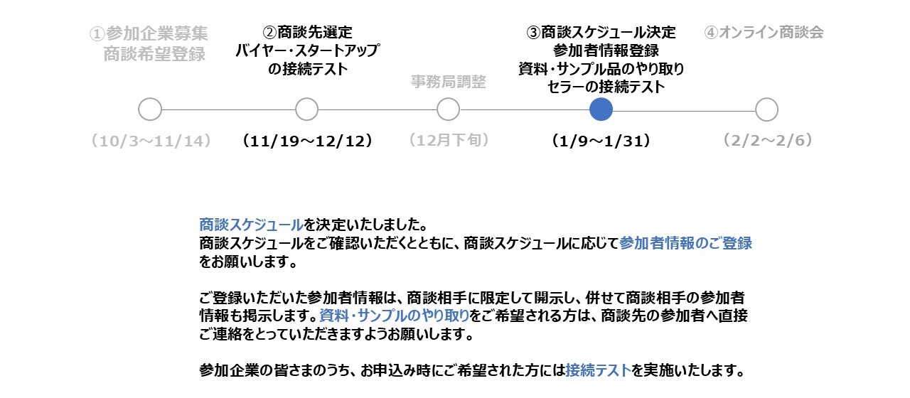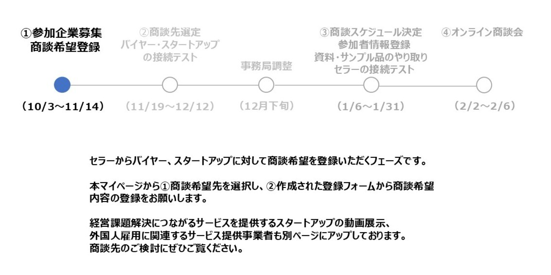 ②バイヤー・スタートアップの参加可能日程をよくご確認ください。